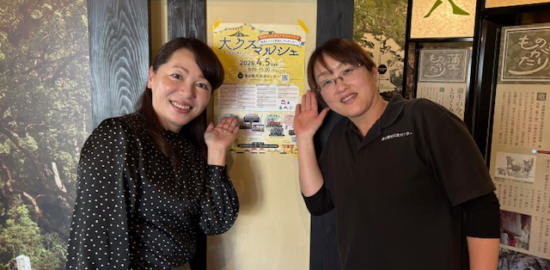 今度の日曜日、4月5日に大クスマルシェが開催されます。お話を蒲生観光交流センターの上永吉美…