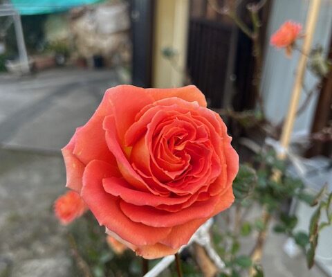 RN. 田中北町・岩田町 さん今、私の庭に 薔薇 ブラスバンド が 4輪 咲いています。この寒い時期に綺麗な薔薇に元気を貰っています。…
