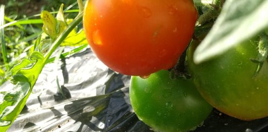 RN. 薩摩川内市ジャスミン さん菜園のトマトが少しずつ熟してきました。みずみずしく甘いト…