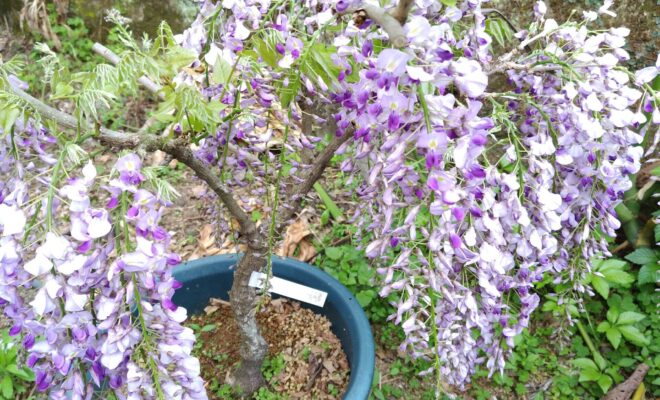 RN. 赤バケツ さんさくら🌸の次は、藤の花ですね~。3年前に、木市屋で購入した、藤の花の鉢植え。今年も綺麗に、モヘ 咲きました。和気公園の藤の花は、まだかな❔毎年見に行っています。迫力満点ですよね~…