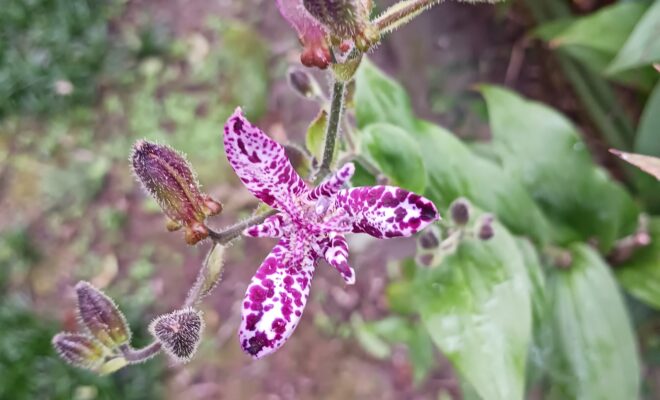 RN. もしかしてフラガール さん知人からホトトギスの苗を1株頂き、育てました。と言うよりほとんど肥料も手入れもしますんが、株も増えて1本に20個位蕾がつくので次々と1ヶ月咲き続けます。紫、白、ピンクがあるそうですが我が家は紫です…