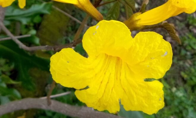 RN. 紫原ランナー さん雨の中イペーが咲き始めました。8時過ぎ雨が降り始めましたが黄色い花のイペーに癒されている紫原ランナーです。畑には風で倒れているピンクのカスミ草も綺麗ですよ。…