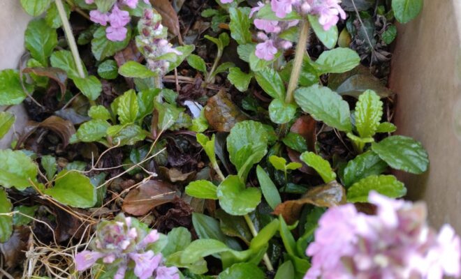 RN. 薩摩川内市ジャスミン さん桜が満開していく中、我が家の玄関前のプランターに植えてるアジュガが、開花してきました。多年草なので毎年咲いてくれます。春はいろんな花が次々に咲いてくるので、楽しみがいっぱいです。…