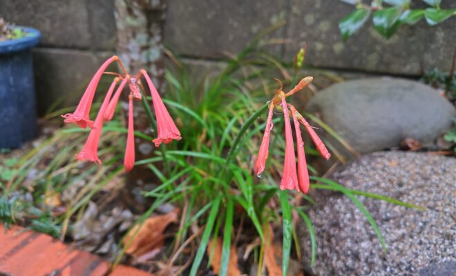 RN. 帰って来て!かめたろう さん庭の片隅に毎年今の時期、濃いピンクの花が咲きます。調べて見ると「キルタンサス」という名前でした。和名ー笛吹きスイセン花言葉ーロマンチック花が筒状になっていて先端がカールしています。下を向いて、つ…