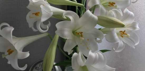 RN. オレンジロード さん今朝、真っ白な鉄砲ユリを飾って見ました昨年は、害虫に犯されてほとんど、…