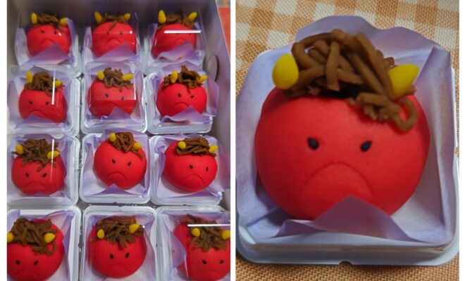 RN. 姶良もぜ子 さんちょっと早めの厄落としに姶良の同僚と2人で職場のチームに恒例の差し入れをしました。姶良のお菓子屋「あじ福」さんの可愛い赤鬼ちゃんたち。圧巻の12匹ですが、実はかくれんぼしていて、二段になっているので、本当は…