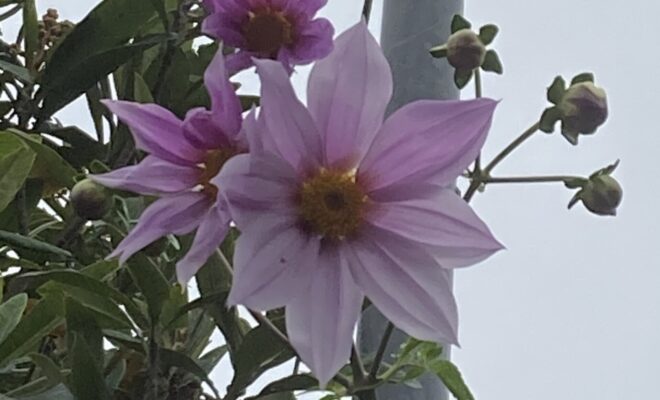 RN. 菜園 さん一段と寒くなりました。庭の花も交替して来ました。東側に遅く蒔いたひまわり。一本に数個の花を咲かせる種です。西側に皇帝ダリアが咲き出しました。どちらも霜に弱いので、寒さが気になります。…