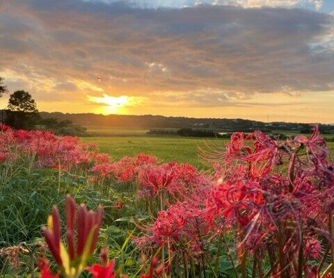 RN. 菜の花畑 さん昨日、夕方、彼岸花と夕陽と黄金色の稲穂が綺麗だったので、一枚!…