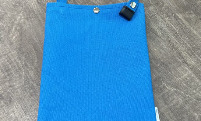 ほぼA4サイズの縦型ワンハンドルバッグです。 持ち手が着脱可能な片側ボタン止めになっているので他のバッグの持ち手につけて使うこともできます。軽く糊がついた、弱撥水タイプの帆布製で、さりげない「suzume」のタグ…