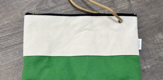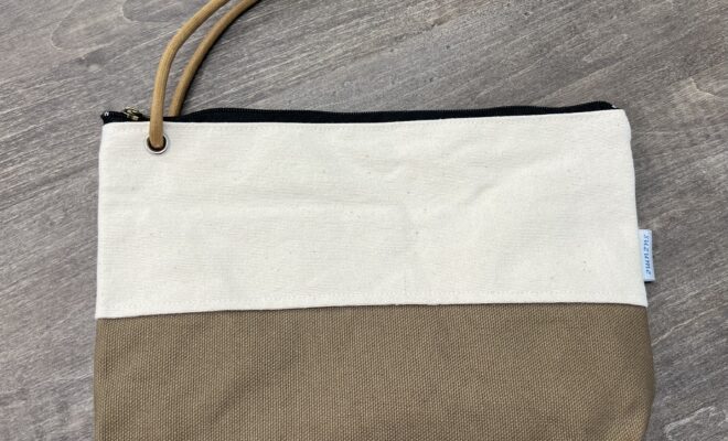 そのまま手首にかけてミニクラッチバッグとしてもバッグインバッグとしても使えるファスナー付きポーチ。中にはポケットもついているので、ちょっとした小物の整理にも活躍してくれそうです。軽く糊がついた、弱撥水タイプの帆布製…