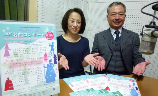 「鹿児島オペラ協会 」が8月20日(水曜日)に宝山ホールで開場18:00・開演18:30から行われる「名曲コンサート」を紹介しました。ご出演は、「鹿児島オペラ協会 」 の松元 祐一さんと濵﨑 三有紀さんでした。プレ…