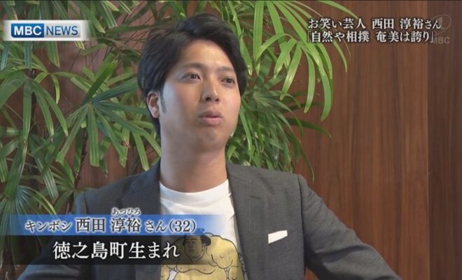 徳之島出身のお笑い芸人、キンボシの西田淳裕さんです。