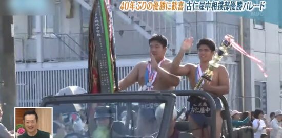 40年ぶりの優勝に歓喜 古仁屋中学校相撲部が瀬戸内町で優勝パレード
