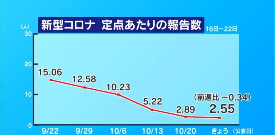新型コロナ2週連続で前週下回る インフルも5週ぶり前週下回る
