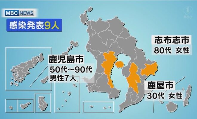 鹿児島県内では5日、新型コロナウイルスの感染者が新たに9人発表されました。4日連続の1ケタです。感染が発表されたのは、鹿児島市の50代から90代の男性7人と、志布志市の80代女性と鹿屋市の30代の女性のあわせて9人です。志…