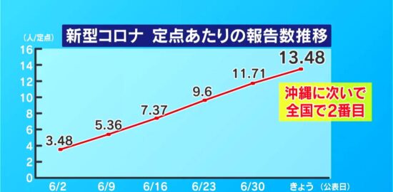 新型コロナ感染者 1週間で671人(前週+183人) 定点あたりは4週前の4.5倍に