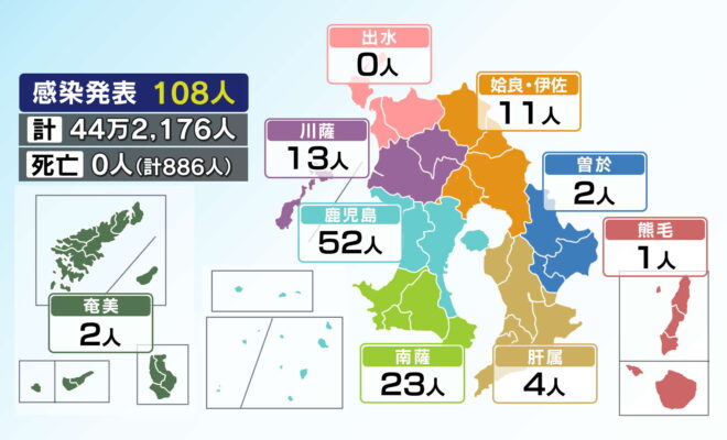 新型コロナ感染者 鹿児島県内で新たに108人 前週より38人減少 死者なし