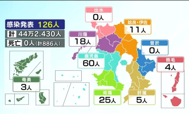 新型コロナ感染者 鹿児島県内126人 2日ぶり前週上まわる 死者なし