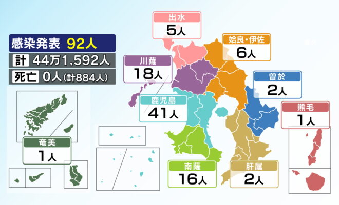 新型コロナ感染者 鹿児島県で92人 4日ぶり前週下回る 死者なし