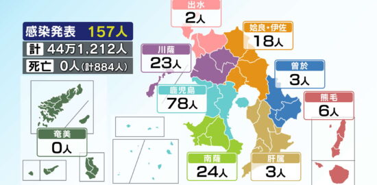 新型コロナ 新たに157人感染 4日ぶり前週上回る 鹿児島県内