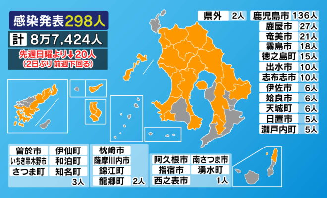 新型コロナ 鹿児島県で新たに298人
