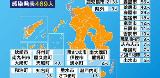 鹿児島県コロナ感染者533人(市町村別詳細)