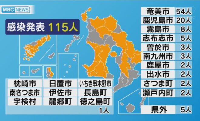 新型コロナ 新たに115人 鹿児島市ではクラスター