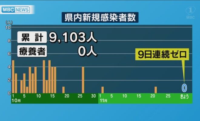 鹿児島県内では30日も、新型コロナウイルスの新たな感染者の発表はありませんでした。感染者の発表がないのは9日連続で、県内の累計感染者は9103人のままです。29日時点で県内の療養者はいません。…