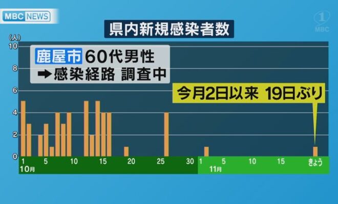 鹿児島県内では21日、新型コロナウイルスの新たな感染者が1人発表されました。感染者の発表は19日ぶりです。新たに確認されたのは、鹿屋市の60代男性で、感染経路は調査中です。県内での感染者の発表は今月2日以来、19日ぶりです…