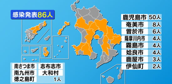 鹿児島県内では3日、新型コロナウイルスの感染者が新たに86人発表されました。また、感染者1…