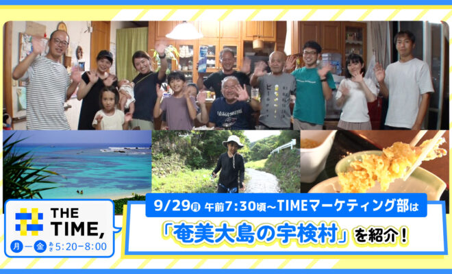 【THE TIME,】9/29(月)午前7:30頃~「TIMEマーケティング部」は奄美大島の宇検村を紹介!