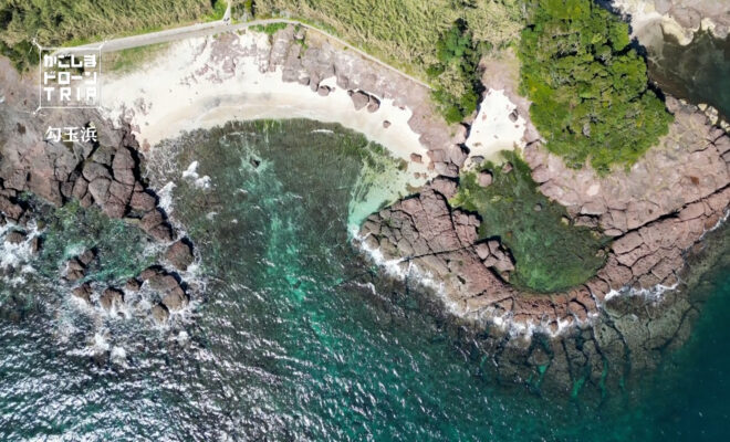 今回の舞台は枕崎市白沢西町・勾玉浜。 波の浸食を受けた岩々が「勾玉」のような形になった勾玉浜は枕崎の景勝地となっています。