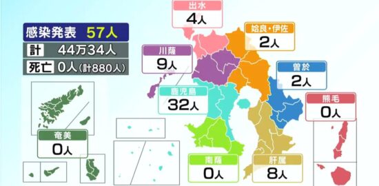 鹿児島県内では13日、新型コロナウイルスの感染者が新たに57人発表されました。(医…