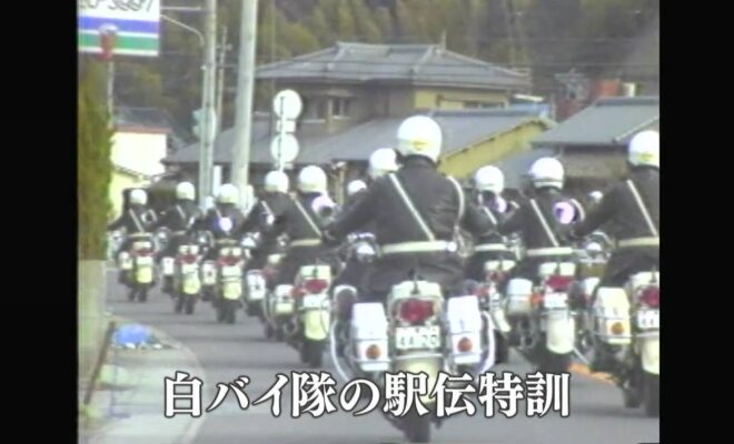 県下一周駅伝に向けて県警機動隊白バイ隊特訓(鹿児島市など)(1983)