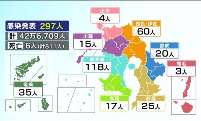 新型コロナ 鹿児島県で新たに297人感染 13日連続で前週下回る 6人死亡