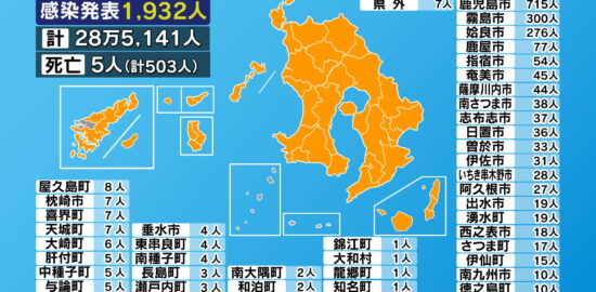 新型コロナ 鹿児島県内新たに1932人感染 20日連続前週下回る 5人死亡