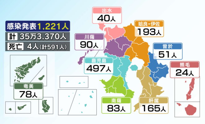 新型コロナ 鹿児島県で新たに1221人感染 22日連続で前週上回る 死者発表は4人