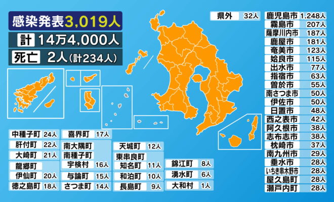 【市町村別詳細】新型コロナ 鹿児島県で新たに3019人 1週間で2万人超
