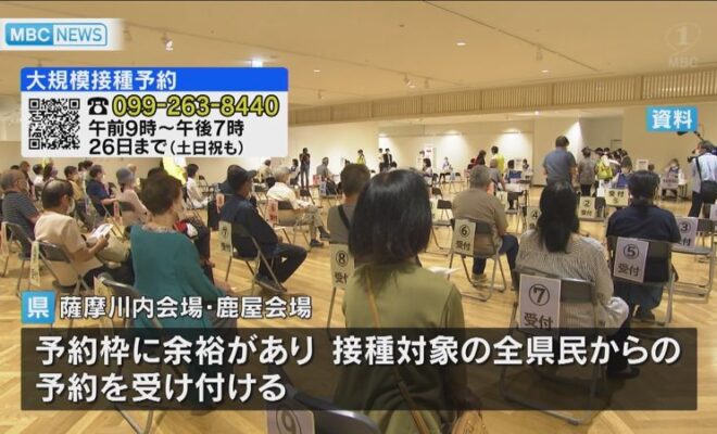 鹿児島県は3回目のワクチン大規模接種について、鹿屋と薩摩川内市の会場で、接種券がまだ届いていない人も予約を受け付けると発表しました。居住地に関わらず申し込めます。県は、予約枠に余裕がある薩摩川内市のサンアリーナせん…