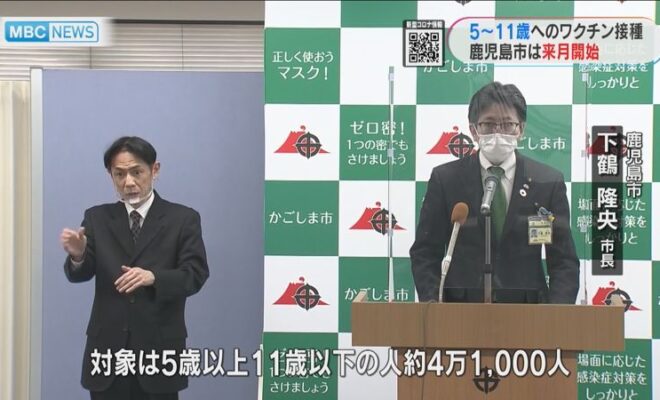 鹿児島市は5歳から11歳までの子どもを対象にした新型コロナワクチンの接種について、今月中に接種券を発送し、来月から接種を始めることを明らかにしました。(鹿児島市 下鶴隆央市長)「対象は5歳以上、11歳以下の人、約4…
