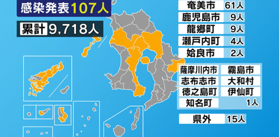 新型コロナ 鹿児島県内で新たに107人 4日連続で100人超