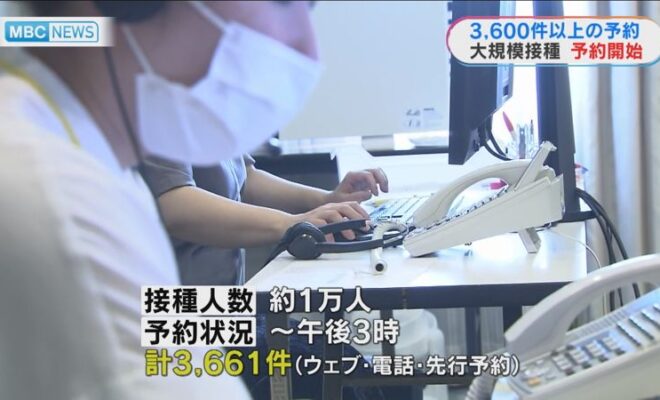 鹿児島県の大規模接種予約始まる 午後までに約3600件超
