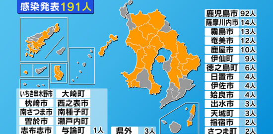 鹿児島県内では24日、新型コロナウイルスの感染者が、新たに191人発表されました。県内では…