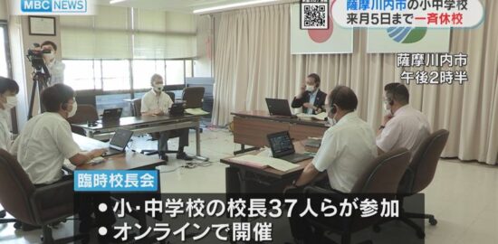 新型コロナの感染拡大を受け、鹿児島県薩摩川内市では25日、甑島を除く市内の小・中学校など3…