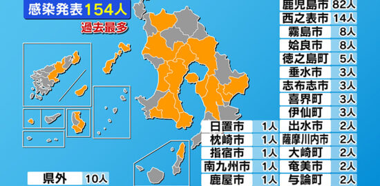 新型コロナ感染者 過去最多154人 鹿児島市では82人