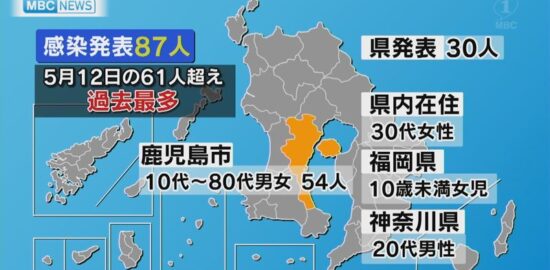 鹿児島県内では6日、新型コロナウイルスの感染者が過去最多となる87人、確認されました。…