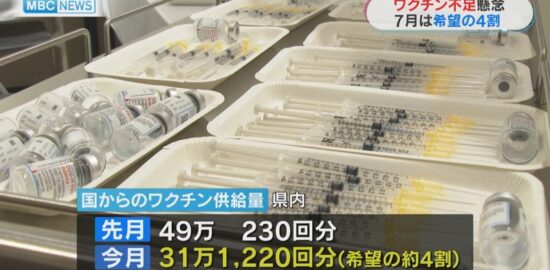 ワクチン供給 県内7月は要望の4割 不足懸念も