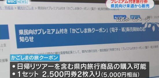 県民向けプレミアム付き「かごしま旅クーポン」12日から販売