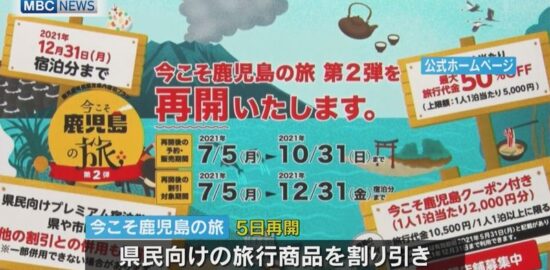 鹿児島県は7月1日、新型コロナの警戒基準をステージ2に引き下げ、来週5日から県民の旅行割引…