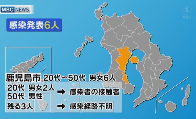 鹿児島県内では3日、新型コロナウイルスの感染者が新たに6人発表されました。感染が確認されたのは、鹿児島市の20代から50代の男女6人で、県発表分はありませんでした。このうち、20代の男女2人と50代男性は、これまで…